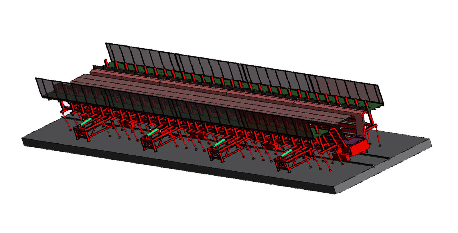 PC環(huán)形疊合板/雙皮墻自動(dòng)化生產(chǎn)線可生產(chǎn)疊合板和雙皮墻。生產(chǎn)的雙皮墻可用于雙皮墻體系的建筑物,也可用于如裝配式管廊,地下室,地下車庫(kù)等地下空間的裝配化施工。