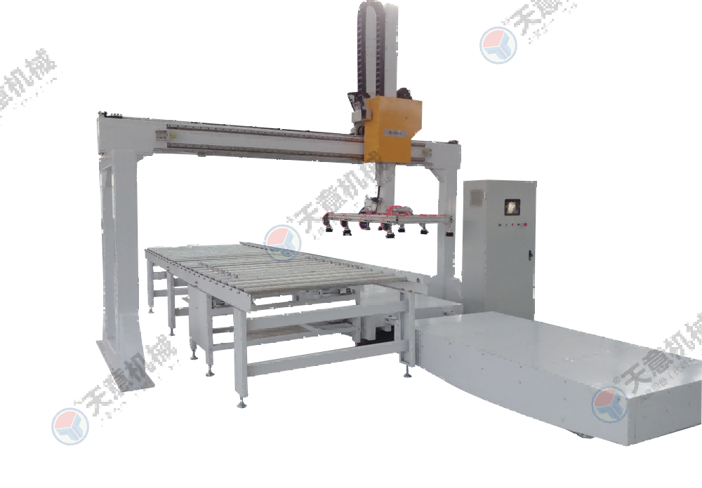 適用于硅酸鈣板、水泥纖維板、玻鎂板、裝飾板等板式工件,配套連線作業(yè)時進(jìn)行自動上料或下料;自動電腦控制人機(jī)界面觸摸式顯示屏:調(diào)整故障顯示,運行速度,往覆速度,修正參數(shù),顯示工作狀態(tài);吸盤機(jī)真空發(fā)生器采用德國 SCH...