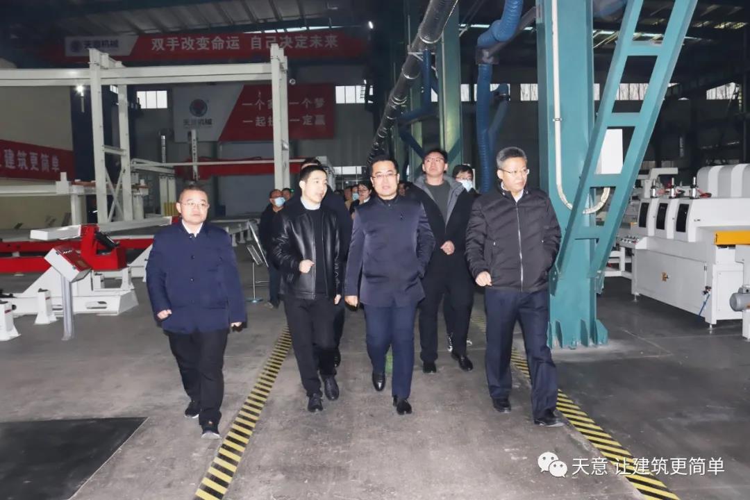 12月19日下午,嘉祥縣委副書記江峰一行蒞臨天意機(jī)械考察全市新舊動(dòng)能轉(zhuǎn)換現(xiàn)場(chǎng)觀摩項(xiàng)目——裝配式建筑自動(dòng)化PC生產(chǎn)線項(xiàng)目。兗州區(qū)區(qū)委副書記寇寧,發(fā)展和改革局副局長(zhǎng)劉守全,天意機(jī)械總經(jīng)理劉海龍等領(lǐng)導(dǎo)陪同考察。